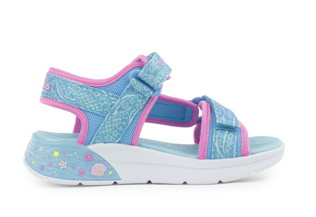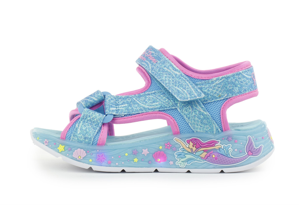 SKECHERS lány pillekönnyű, VILLOGÓ talpú sellős türkizkék szandál, 27-32 ! ÚJ KOLLEKCIÓ!